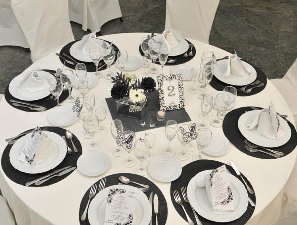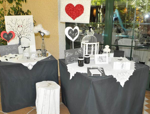Cada uno de los detalles de vuestra boda será elegido en relación a los tonos blancos y negros, una combinación perfecta que simboliza la unión de dos personas en un día tan importante como el de su boda. Las bodas en blanco y negro están de moda y son muchas las parejas que solicitan esta decoración para el día de su boda. Todo puede adaptarse a esta original temática: elementos decorativos, mantelería, centros de mesa, tarjetería, photocall, candy bar, árbol de huellas… ¡hasta tu tarta nupcial! Impregna tu boda de glamour y sofisticación, elige tu boda en blanco y negro. Contacta con nosotros.